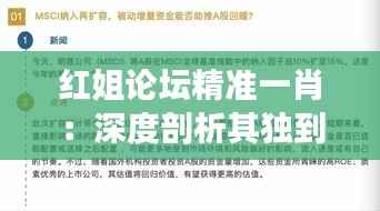 在澳门这个充满机遇和挑战的地方,一个深度剖析行业动态、精准预测趋势的论坛显得尤为重要。接下来,我们将详细介绍“红姐论坛精准一肖:深度剖析其独到见解与行业影响力”。