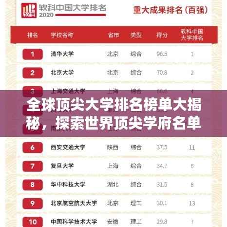 在全球化的时代,教育已成为人们关注的热点话题,随着国际交流的加深,了解世界各地的优秀大学成为了众多学子追求的目标,本文将为您揭晓全球顶尖大学的排名名单,带您一探世界的排名大学名单。