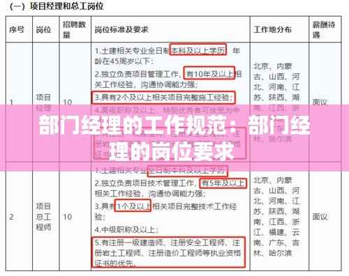 部门经理的工作规范:部门经理的岗位要求