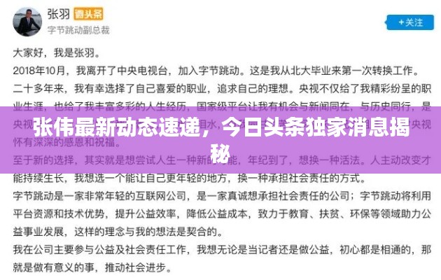 转载请注明来自衡水悦翔科技有限公司,本文标题:《张伟最新动态速递,今日头条独家消息揭秘》