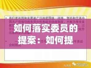 政协委员的提案是民主监督和参政议政的重要途径,是推动国家治理体系和治理能力现代化的重要手段。提案的落实情况直接关系到国家政策的实施效果和社会问题的解决程度。因此,如何有效落实委员的提案,成为了一个亟待解决的问题。
