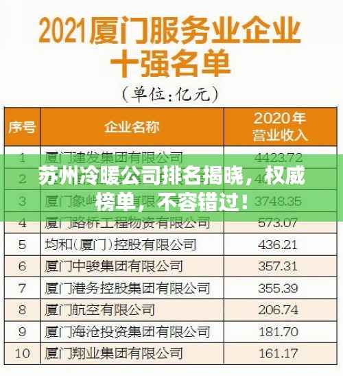 随着社会的快速发展,冷暖行业在苏州地区也得到了长足的发展,众多冷暖公司纷纷涌现,为市民提供优质的服务,本文将对苏州地区的冷暖公司进行排名,以便消费者更好地了解并选择适合自己的服务。