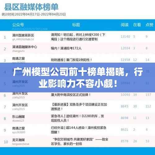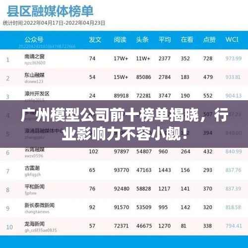 广州,作为中国的经济中心之一,其模型制作行业也日渐繁荣,众多模型公司在这里汇聚,形成了颇具规模的产业链,本文将为您揭晓广州模型公司的前十名排名,并探究它们在行业中的影响力。