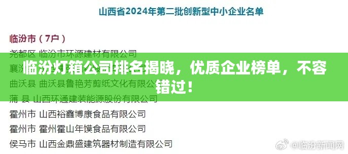 随着广告行业的快速发展,灯箱作为重要的宣传媒介,其市场需求日益增加,临汾地区作为山西省的重要城市,拥有众多的灯箱制作公司,本文将介绍临汾灯箱公司的排名及相关信息。