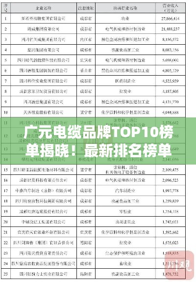 电缆作为现代能源传输和信息传递的重要载体,其品质直接关系到各行各业的安全与稳定,广元地区作为电缆产业的重要基地,拥有众多知名品牌,本文将为您介绍广元电缆品牌排名前十名,带您了解这些优秀品牌的发展历程、产品特点以及市场影响力。