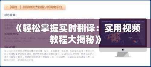 标题:《轻松掌握实时翻译:实用视频教程大揭秘》