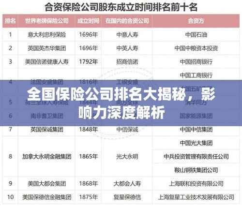 随着保险行业的快速发展,各大保险公司都在努力提升自身实力,以赢得市场份额,本文将根据最新的数据,对全国保险公司的排名及其影响力进行分析。