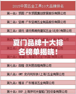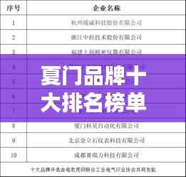 夏门品牌排名前十的品牌在多个领域表现出色,凭借卓越的品质、创新的精神和良好的服务赢得了广大消费者的信赖和喜爱,这些品牌将继续保持其领先地位,并不断提升自身的竞争力和影响力。