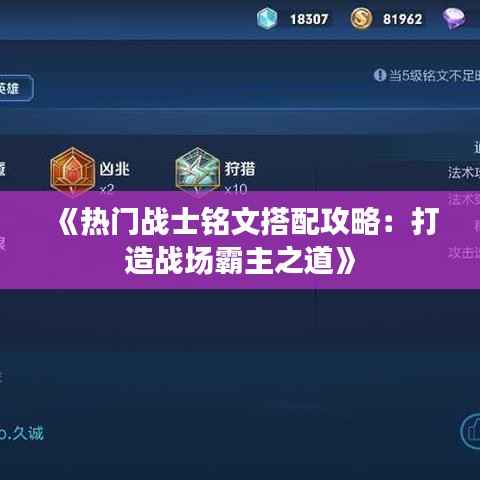 标题:《热门战士铭文搭配攻略:打造战场霸主之道》