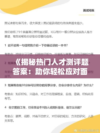 标题:《揭秘热门人才测评题答案:助你轻松应对面试挑战》