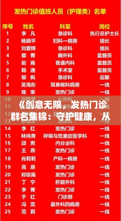 标题:《创意无限,发热门诊群名集锦:守护健康,从名字开始》