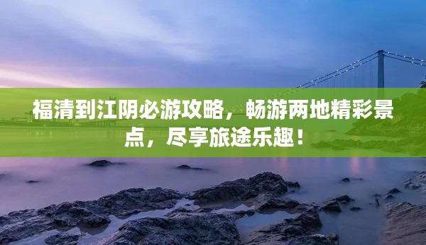 福清与江阴,两个美丽的城市,各自散发着独特的魅力,福清以其丰富的自然景观和深厚的文化底蕴吸引着无数游客,而江阴的现代化城市风貌和独特的旅游体验也让人们流连忘返,本攻略将带您从福清出发,探索到江阴的最佳旅游路线和体验。