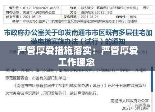 在新时代的背景下,我国政府高度重视社会治理和公共安全,不断探索和创新管理模式。严管厚爱措施作为一种新型的管理模式,旨在通过严格的规范和关怀并重的手段,提高管理效率,促进社会和谐。本文将从严管厚爱措施的背景、实施原则、具体措施以及成效等方面进行详细阐述。