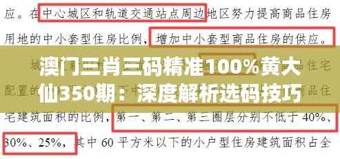 在澳门三肖三码精准100%黄大仙350期中,选码技巧是至关重要的。以下是一些关键点: